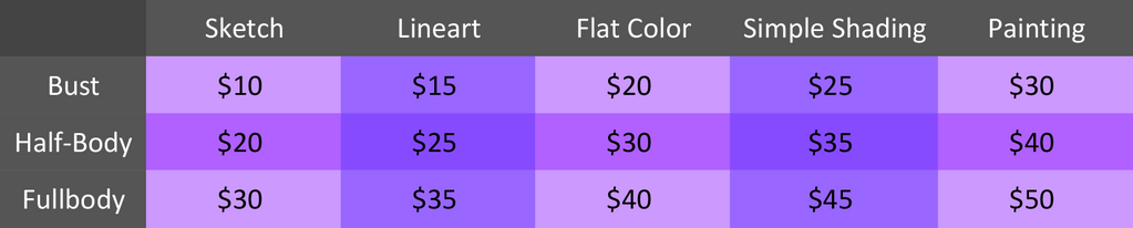 Prices may vary according to details of the required piece, and may be reduced if the piece is simplistic (i.e. a small and/or simplified animal) or increased if complex (i.e. complicated props, costumes, mechanical parts, etc.)Simple backgrounds may be included with no additional charges (i.e. solid blocks of color, gradients, small environmental indicators such as grass/soil at the characters feet). These elements must specifically be requested or the image will be presented with a transparent background.Additional Characters
